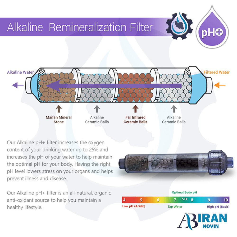 این فیلتر،فیلتر مرحله هفتم دستگاه تصفیه آب بوده و قادر است یون های کلسیم ، پتاسیم ، منیزیم را به آب اضافه کند، درجه قلیاییت آب را بین یک الی یک و نیم واحد افزایش دهد، مسبب دلپذیرتر شدن طعم آب ، جذب بیشتر اکسیژن در بدن و همچنین موجب قوی شدن سیستم دفاعی بدن شود.