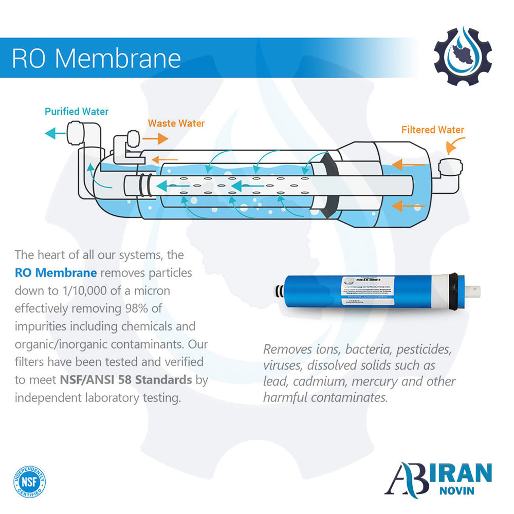 غشای نیمه تراوا فیلتر ممبران(ممبرین) اسمزمعکوس نام دارد که به عنوان فیلتر مرحله چهارم شناخته میشود.فشار لازم برای انجام این عمل توسط موتورپمپ تأمین میشود.