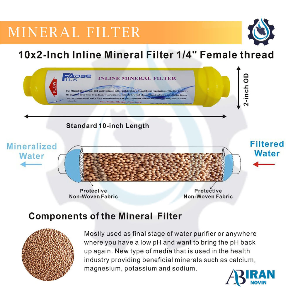 املاح و سختی آب آشامیدنی تصفیه شده،بعد از عبور از فیلتر معدنی در اثر تماس با مواد معدنی موجود در مینرال تا میزان تعادل افزایش میابد و حتی طعم آب تصفیه شده نیز بهبود میابد.و به دلیل اینکه این فیلتر جز مراحل آخر دستگاه است،این املاح ته نشین نشده و یا از بین نمیروند.