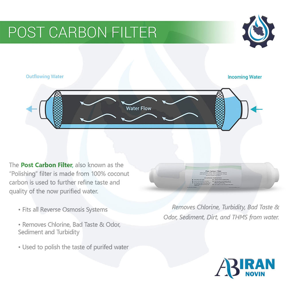 زمانی که ممبران آب را کاملا تصفیه کرد و درون مخزن جمع آوری شد،در صورتی که آب برای مدتی در مخزن باقی بماند،ممکن است کیفیت خود را از دست بدهد یا مزه و بوی بدی بگیرد.بنابراین درهنگام خروج آب،فیلتر پست کربن قرار میگیرد تا تصفیه نهایی را انجام دهد و آب را از هرنوع طعم و بوی نامناسب بیالاید.