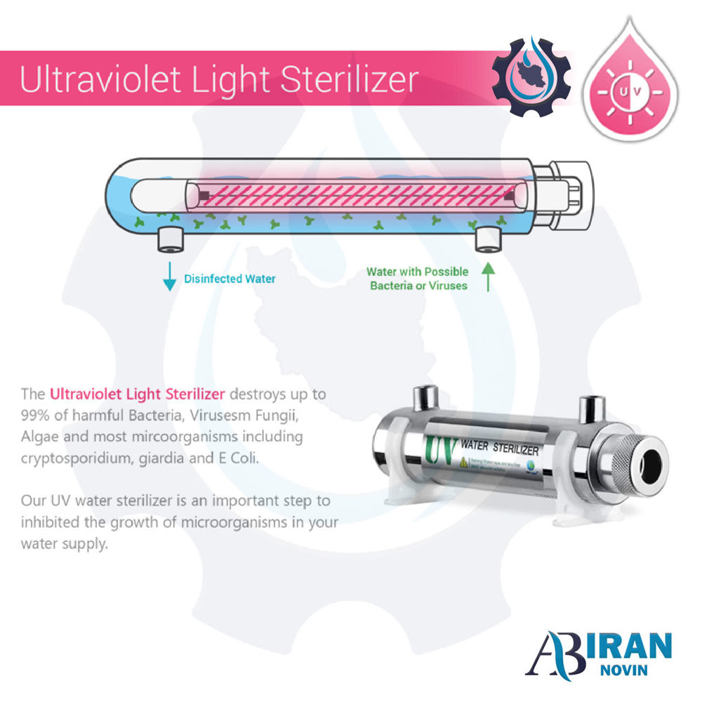ساختار ژنتیکی ویروس ها،قارچ ها و باکتری های خطرناک موجود در آب در اثر جذب انرژی اشعه فرابنفش ناشی از فیلتر یووی تخریب شده و در نتیجه تمام میکروارگانیسم های خطرناک موجود درآب از بین رفته و از رشد و تکثیر آنها جلوگیری میکند.